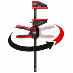 Thanks to innovative 360° turning mechanism to perfectly adjust the handle position to the clamping task thanks to long protective caps to protect the workpiece surface and distribute the clamping force of up to 1,400 N by changing the upper part from clamping to spreading thanks to the push-button release mechanism