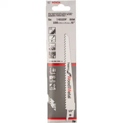 Wood with nails/metal, chipboard (<100 mm), plastic profiles (<100 mm), glass fibre reinforced plastic/epoxy (<50 mm), window frames: wood + metal, especially for plunge cuts. Total length: 150mm
