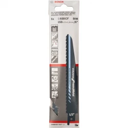 Bosch S930CF Sabre Saw Blade endurance for heavy metal (Pack of 5) P/No. 2 608 657 527. Thick sheet metal (4-12 mm), thick-walled, solid pipes and profiles (<100 mm). Ideal for pipe cutting device, for rescue/demolition work. Powerful, coarse cut.