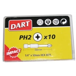 Dart PH2 X 50mm Impact Driver Bits, Box Of 10