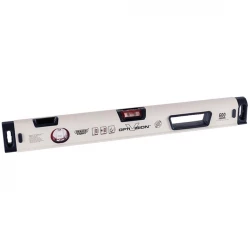 Expert quality, tough aluminium box section levels comprising two highly visible ‘Opti-Vision’ solid acrylic shockproof UV resistant vials, a reinforced horizontal vial with gradient lines and a vertical vial with side view into a patented curved profile for enhanced visibility.