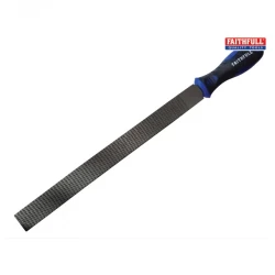 The Faithfull flat wood rasp is for use on wood or soft metals, for professional or frequent DIY use. This range of rasps has coarse bastard teeth with single cut edges and is fitted with a comfortable handle.