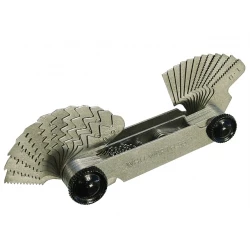 Combination of 52 Whitworth standard 55 degrees and Metric standard 60 degrees leaves per gauge (0.25 – 6.0mm tpi)
