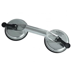 The suction lifter has a heavy-duty aluminium body with two 120mm rubber gripping pads each fitted with a simple lever action, locking vacuum system. Two pads provide an increased lifting capacity, added safety and security by spreading the total load.