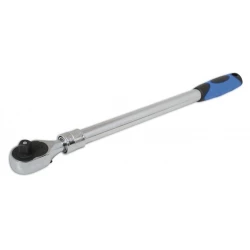 This high quality 1/2″D ratchet has an extending function; simply release the spring loaded mechanism on the handle and the ratchet grows from 460mm (18″) to 601mm (24″).
