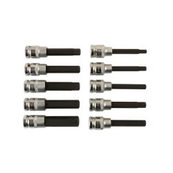 A set of long metric Hex 1/2″D socket bits from 6mm to 17mm.