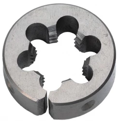 Circular split dies can be used by hand or machine. Because the die has a split it can be adjusted slightly to provide a thread slightly smaller or larger than the norm. Metric Coarse Adjustable Dies.