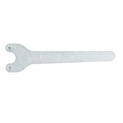 Two-hole spanner, straight for clamping all discs on one-hand angle grinders.